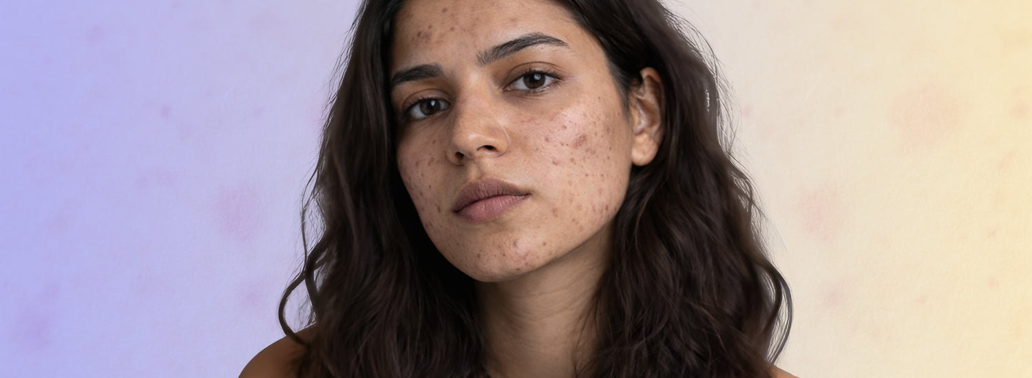 - Flat red or pink marks where acne healed